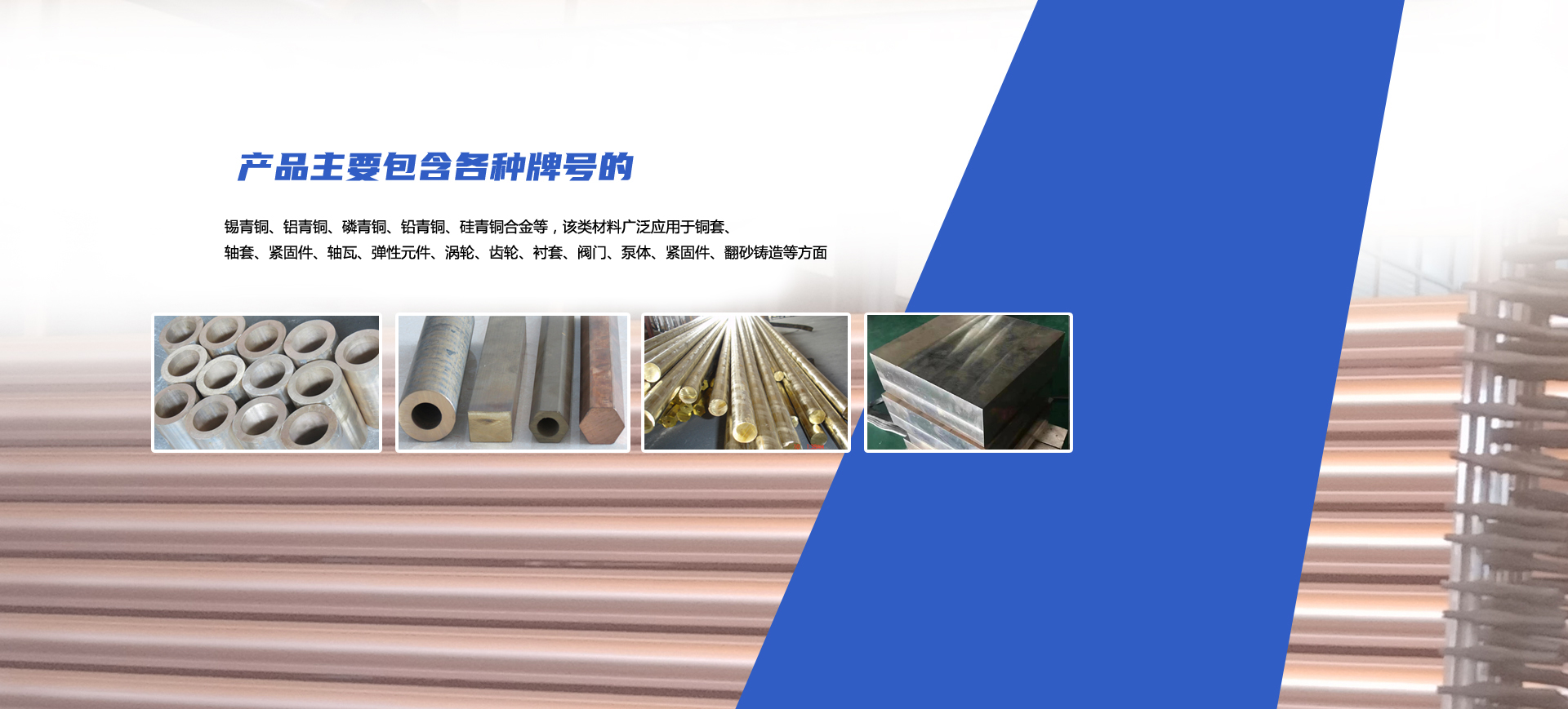 公司擁有多條連鑄熔銅生產(chǎn)線,并配備全分析直讀光譜儀、專業(yè)從事銅合金材料的研發(fā)、加工、銷售,產(chǎn)品主要包含各種牌號(hào)的錫青銅、鋁青銅、磷青銅、鉛青銅、硅青銅合金等,該類材料廣泛應(yīng)用于銅套、軸套、緊固件、軸瓦、彈性元件、渦輪、齒輪、襯套、閥門、泵體、緊固件、翻砂鑄造等方面。